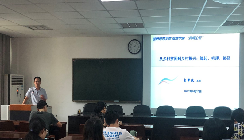 2022年9月20日下午,太阳集团tyc151首期“景明论坛”在经管楼401成功举办。太阳集团tyc151高军波教授作了题为“从乡村贫困到乡村振兴:缘起、机理、路径”的学术报告,太阳集团tyc151部分师生聆听了报告。报告由李明伟副教授主持。