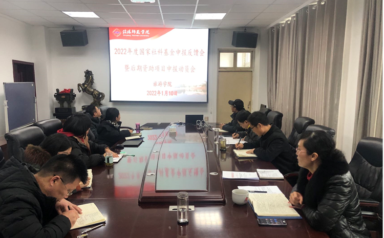 1月10日,太阳集团tyc151在经管楼404会议室召开2022年度国家社科基金项目申报反馈会暨后期资助项目申报动员会。会议采用线上线下结合方式进行,由副经理吴国琴主持,雷前龙书记、高军波经理及20余位老师参加了本次会议。