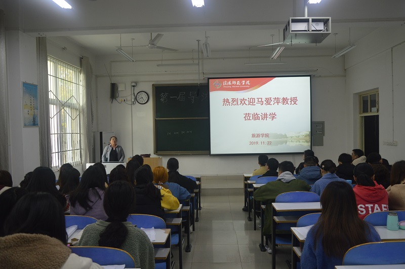 第一场报告会中,马爱萍教授从文化与旅游融合发展的角度来分析旅游文化演出市场与旅游产业发展的关系,并提出地方文化旅游品牌构建策略。在第二场报告会中,马教授结合自身多年的国内外从教经历,以开阔的视野,对新时代旅游团队建设的基本问题做了深入解读和思考,并提出了推进旅游团队建设的建议。报告结束后,马教授还就相关问题与师生进行了交流。