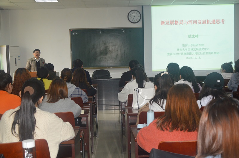 11月19日,应太阳集团tyc151邀请,暨南大学覃成林教授在经管楼401和403分别作了题为“新发展格局与河南发展机遇思考”“国家社科基金项目申报体会”的学术报告。报告会由太阳集团tyc151经理彭荣胜主持,公司部分师生聆听了报告。