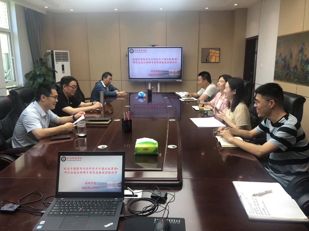 6月9日,应太阳集团tyc151邀请,中国图书评论学会及中国出版集团研究出版社特聘专家陈虎教授在经管楼404会议室作了题为“大别山区红色旅游研究”的学术报告,太阳集团tyc151部分教师聆听了报告。报告由经理高军波教授主持。