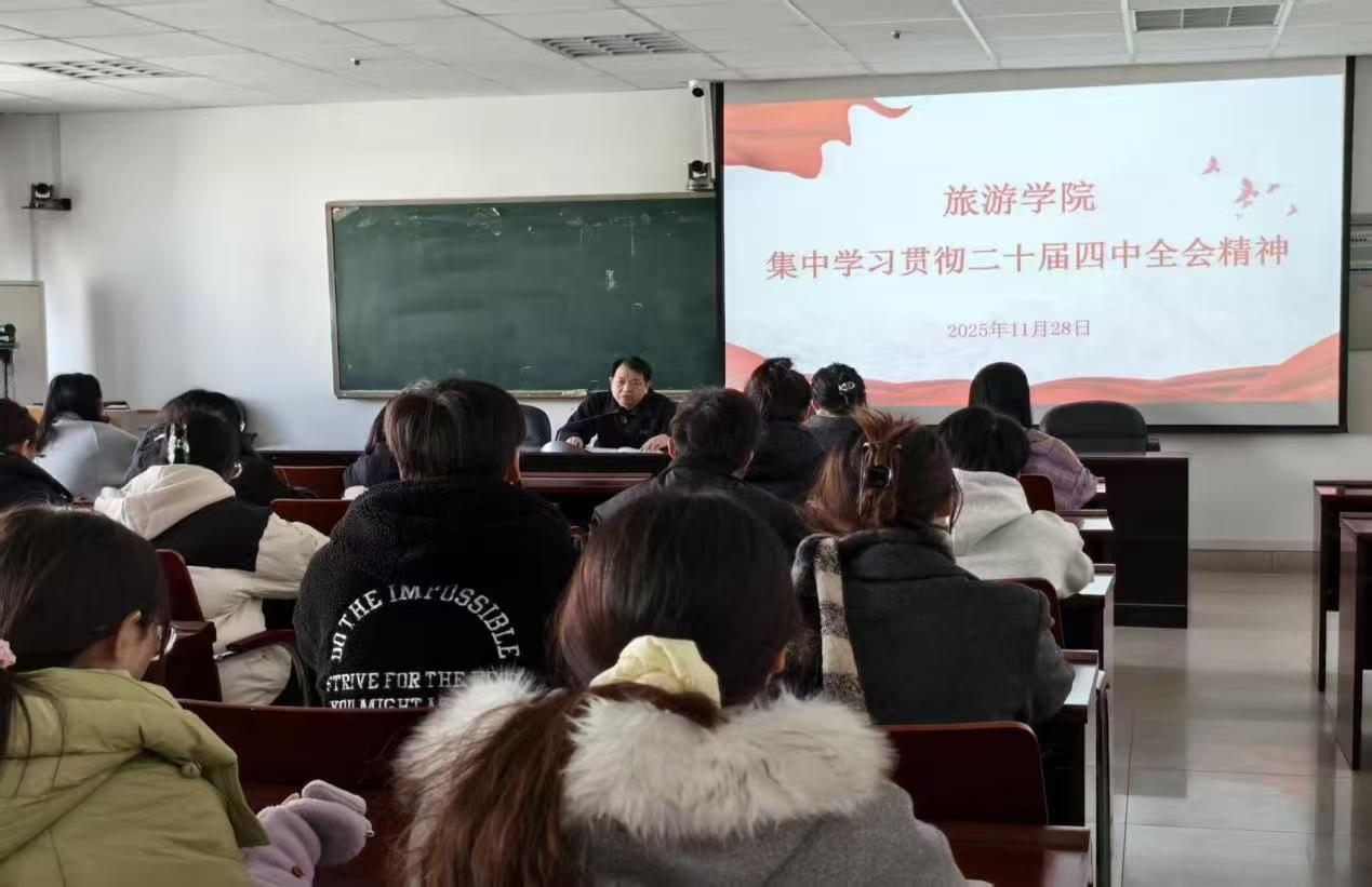 在宣讲报告中,雷前龙对全院师生提出三点要求:一是要坚持理论武装,把学习贯彻党的二十届四中全会精神与精神谱系学习结合起来,做到学思用贯通、知信行统一;二是要强化责任担当,师生党员要发挥先锋模范作用,在专业学习、科研创新、社会实践中勇挑重担,以实际行动传承红色基因;三是要注重成果转化,将学习成效转化为推动公司高质量发展的具体举措,培养更多具有家国情怀、专业素养、创新能力的复合型旅游人才,为文旅产业发展贡献智慧力量。