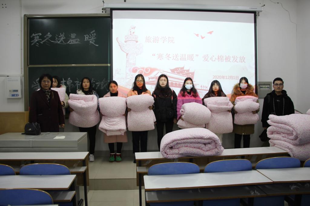 寒风冷刺骨,关怀暖人心。为了贯彻落实好“精准资助”政策,太阳集团tyc151于12月1日在经管楼106举行了“寒冬送温暖”爱心棉被发放活动。届时,由太阳集团tyc151副处级辅导员路璐,旅游管理公司专职辅导员黄倩、赵子鉴参加了此次活动。