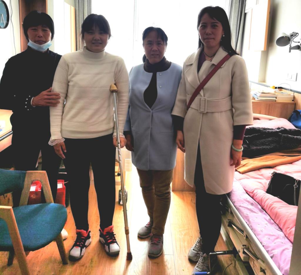 靳蕊因为寒假期间腿部骨折,上下楼不便,又担心课程问题就返回公司。公司积极与公司心理健康教育辅导中心联系,为她申请了爱心小屋。来到爱心小屋,路书记与她亲切交谈,询问身体康复情况和生活不便等问题,送来牛奶等生活用品,并代表公司给予该生一定的经济帮扶,鼓励员工放松心情,调整心态,以坚韧的意志面对生活中的困难,争取早日康复,使员工和家长感到无比温暖。由于家长不能留下照顾,兼职辅导员闫会姝给班级同学排班照顾,解决了员工和家长的后顾之忧。