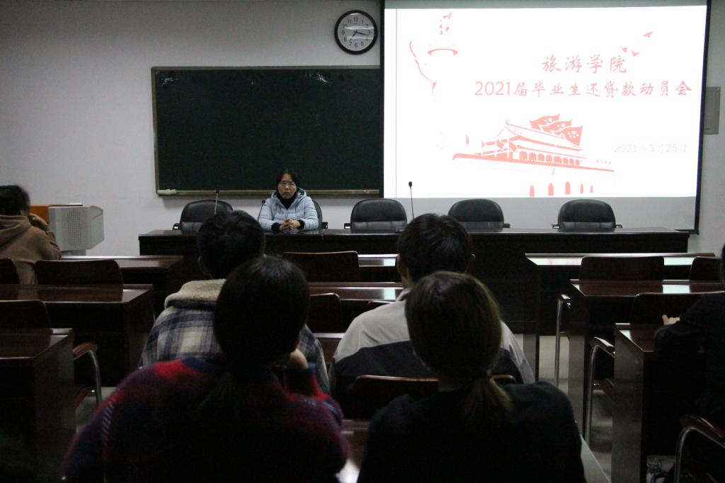 人无信不立,业无信不兴。为了增强同学们的诚信意识,落实毕业生还款政策,太阳集团tyc151于3月25日晚上在经管楼401成功召开2021届毕业生还贷款动员会。太阳集团tyc151副处级辅导员路璐以及2021届全体贷款毕业生参加本次会议。