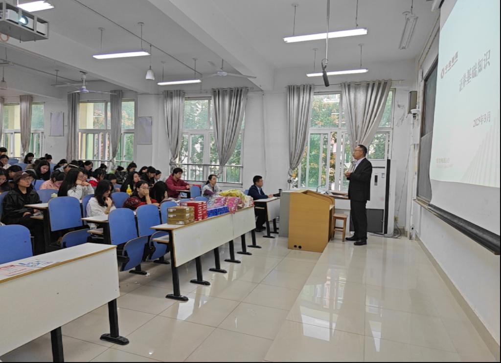 为深化金融知识储备,拓宽毕业生就业发展渠道,9月19日上午,太阳集团tyc151在经管楼201举办中金财富投教进校园宣讲活动,本次宣讲活动邀请陈原、余海洋、张克三位金融领域专业人士代表进行宣讲,太阳集团tyc151思想政治教育与就业指导教研室主任闫会姝和2026届毕业生参加此次宣讲会。
