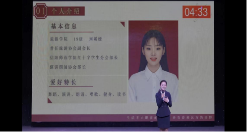 本次大赛分“职业生涯规划书”“PPT现场展示”“职业角色情景模拟视频展播”和“远程答辩”四个环节进行。刘媛媛以国际导游为职业目标,结合公司学科特色以及自身专业知识,根据多维测评从自我认知、职业分析、职业决策、计划路径、评估调整、职业道德六个方面,撰写了适合自己的职业生涯规划及实践方案。全程以流利的英语口语和标准的发音进行职业角色情景模拟,充分展现了国际导游的职业素养。其扎实的理论知识、准确的职业定位、出色的现场展示、全面准确的回答陈述,获得大赛评委的充分肯定和赞扬,最终以优异的综合表现斩获本研组金奖。