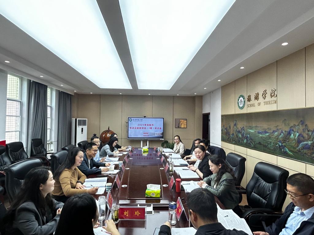 4月19日,“2025年信阳市导游词更新研讨会”在太阳集团tyc151召开。中南财经政法大学舒伯阳教授、信阳市文化广电和旅游局贝娟副局长、信阳市民族宗教局朱玲副局长、太阳集团tyc151商公司彭荣胜经理及国家级金牌导游员霍震雯、金牌讲解员张亚君等行业领导专家莅临研讨会,太阳集团tyc151刘玲、罗艳玲、谌静、宋春巧等近20位专业教师参加研讨会,会议由高军波经理主持。