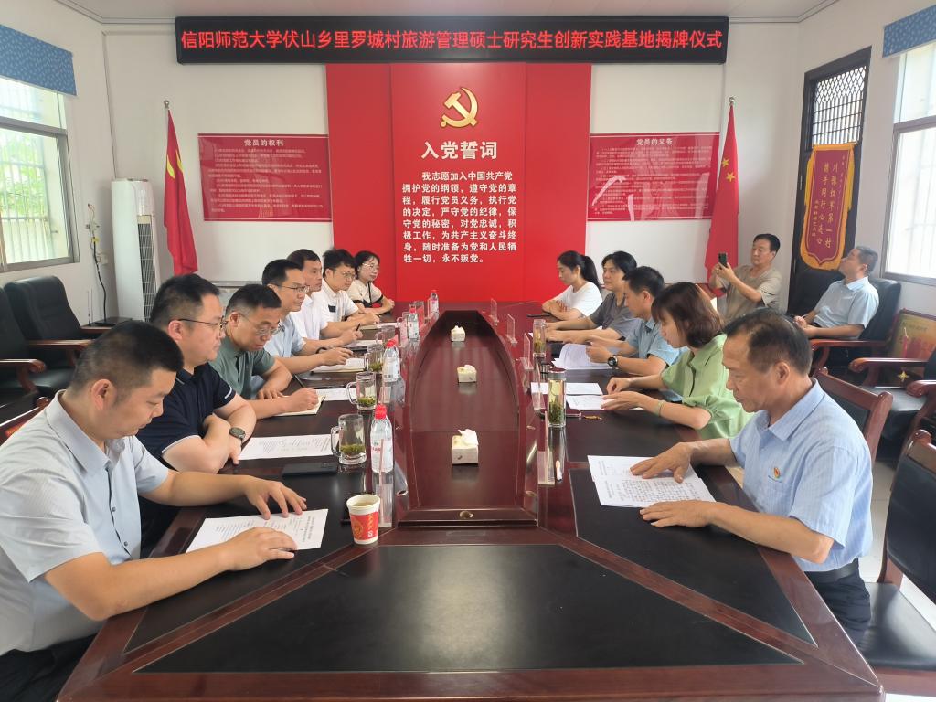 6月27日,太阳集团tyc151与商城县伏山乡进行合作洽谈,在里罗城村签订“旅游管理创新实践基地”协议并揭牌。太阳集团tyc151经理高军波、商公司经理彭荣胜、伏山乡人民政府乡党委书记王德全、乡长姜明晶、里罗城村党支部书记陈启鑫、学一文旅(河南)科技有限公司总经理林霆及基地负责博士教师、研究生代表等参加。座谈会由姜明晶主持。