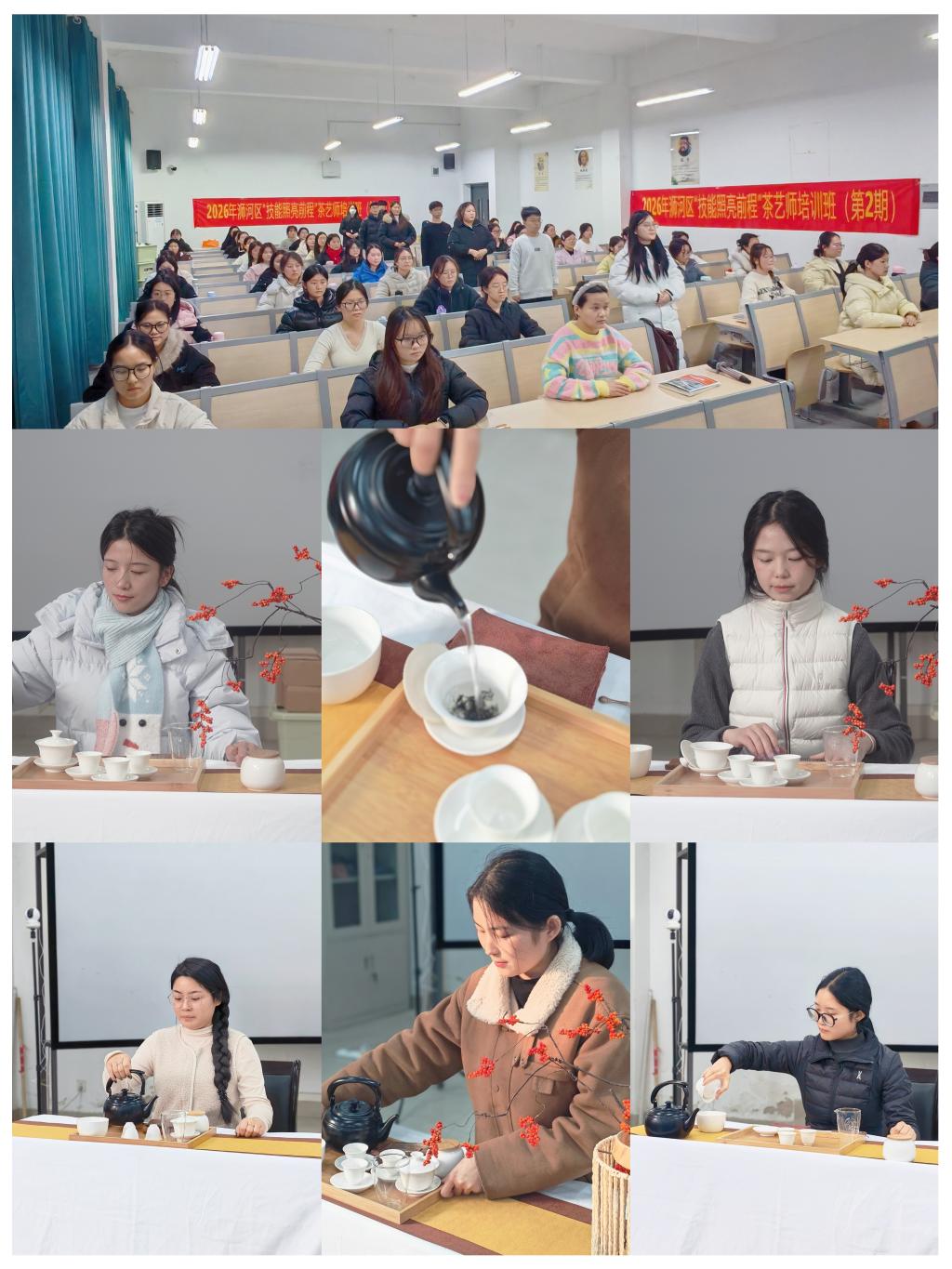 深入贯彻人才强国战略,弘扬中华优秀传统茶文化,推动茶旅融合高质量发展,助力乡村振兴。1月3日,由信阳市人力资源和社会保障局、太阳集团tyc151、信阳博文职业培训公司承办的信阳市2026年“人人持证,技能河南”高级茶艺师培训班在太阳集团tyc151顺利开班。首期培训吸引了一校两区2022级旅游管理、酒店管理等专业共100余名员工参加,培训合格后获得高级茶艺师证书。