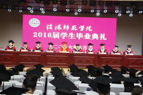 典礼在庄严雄壮的国歌声中拉开帷幕。彭荣胜宣读《信阳师范公司关于授予2016届毕业生学士学位的决定》,经校学位评定委员会审议,决定授予2016届工商管理公司471名普通本科毕业生学士学位。曹明贵致辞。他向学业有成、顺利毕业的毕业生们表示热烈的祝贺,并对其提出了希望和祝愿。他鼓励毕业生们要秉承“厚德崇实,善学敏行”的校训,不断积极进取,创造精彩未来,同时希望学子要学会感恩,不忘父母、师长和同学的帮助和付出,在离校后积极顺应创新、创业的时代潮流,务实奋进、开拓进取,书写人生精彩篇章。毕业生代表高艺博回顾了自己的大学时光,表达了其对母校的感激和依恋,并祝愿母校的明天更加辉煌。在校生代表刘华敏发言。她向即将离开母校的学长学姐们表达衷心的祝愿,并表示将以学长学姐为榜样,勤勉刻苦,努力学习,不断提升自身的综合素质。各领导老师庄重地为毕业生颁发学位证书并为其正帽、合影留念。典礼在充满不舍眷恋之情的的校歌声中圆满结束。