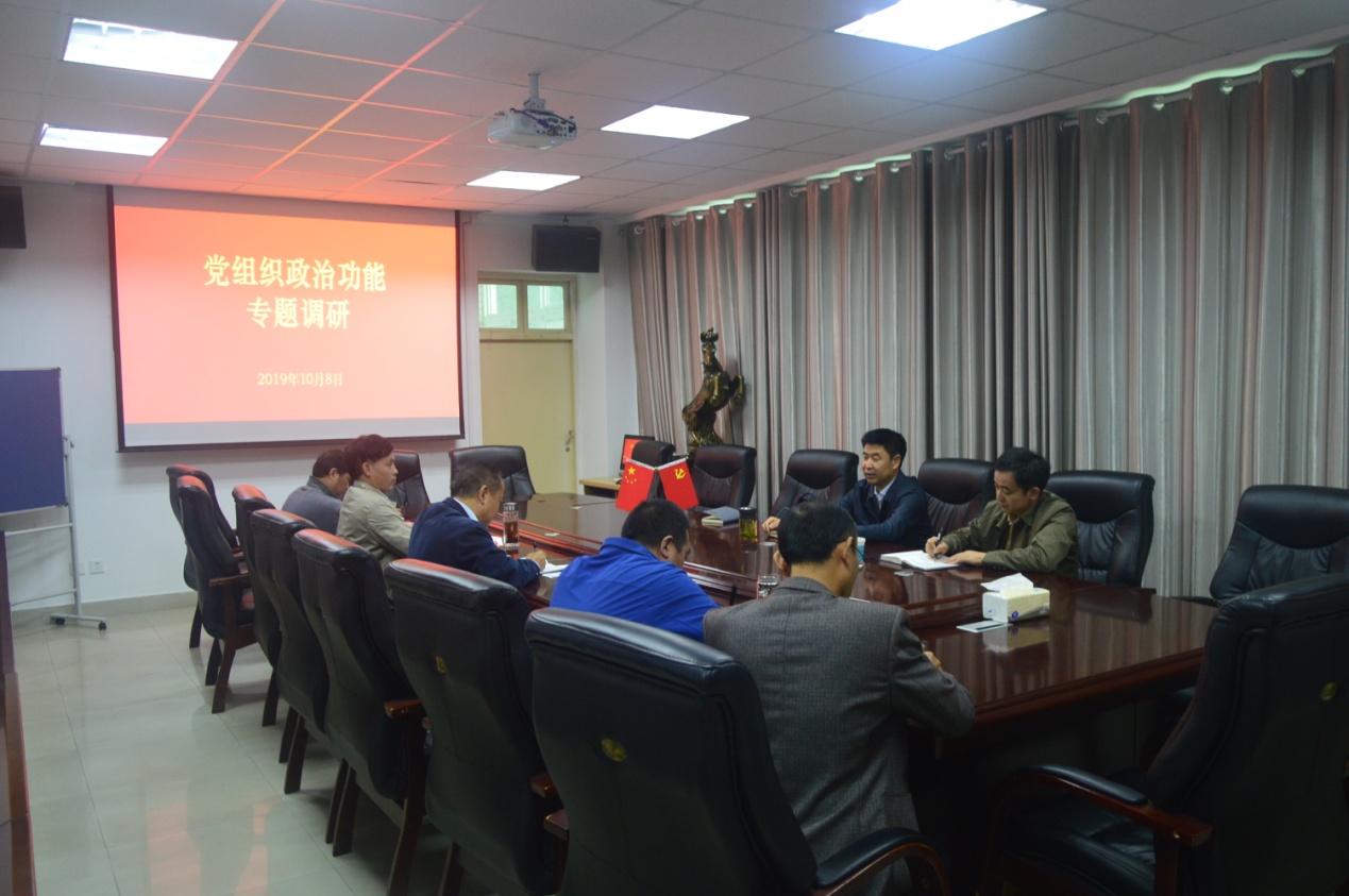 10月8日下午,公司党委书记宋争辉带领党办副主任李周、党办文字秘书丁其科到太阳集团tyc151开展党组织政治功能发挥专题调研。公司党委书记曹明贵、经理彭荣胜、副经理潘国兵、党委副书记张晓峰、党委委员胡宝珠参加了调研会。