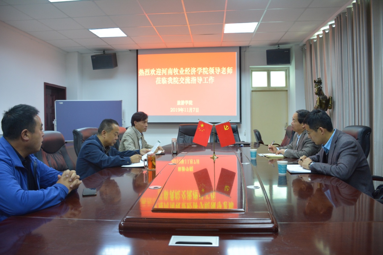 会上,曹明贵代表公司对各位领导的来访交流表示热烈欢迎。彭荣胜从公司历史沿革、专业设置、团队队伍、团队建设、人才培养、科学研究等方面向来宾进行了详细介绍,分享了公司在本科专业建设、实践教学等方面的具体做法和经验。张晓峰就党建、员工教育管理等工作进行了介绍。交流中,河南牧业经济公司两位领导对公司基层党组织建设、教学管理、团队队伍建设、团队建设、学风建设等方面的工作给予了较高的评价,同时也介绍了自己所在公司的办学经验和成效。