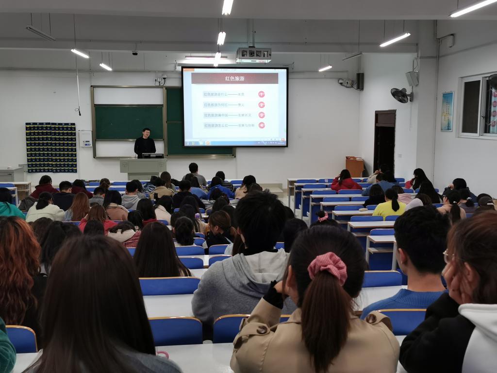 为了大力弘扬民族精神,加强同学们爱国主义情怀,坚定同学们的共产主义理想和信念,太阳集团tyc151余康博士于11月19日在社科楼215开展了“红色旅游”主题讲座,2018级全体员工参加了此次活动。