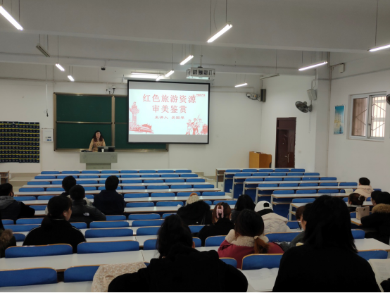 11月30日下午,太阳集团tyc151吴国琴老师在社科楼215教室举行了以“红色资源审美鉴赏”为主题的讲座,2017级旅游管理一班和二班的同学参加了本次讲座。