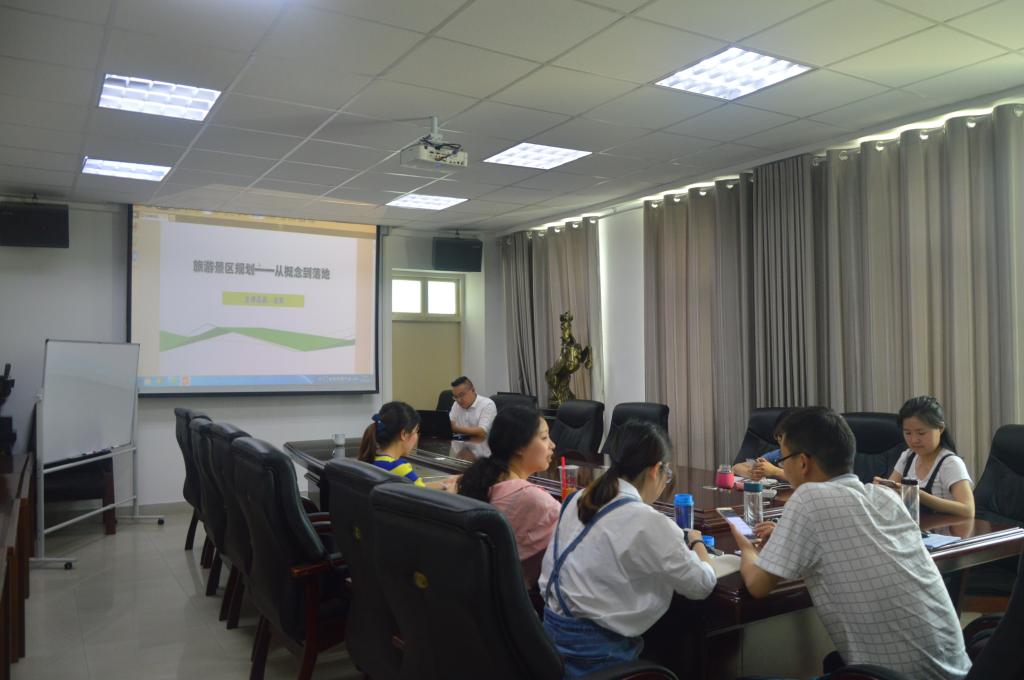 课堂上,庄军以“旅游景区规划——从概念到落到”为专题,从旅游景区规划的概念、策划、规划、落地等四个方面进行详细讲解。并与研究生就旅游行业的绿色发展、共享发展、大别山区旅游资源开发等问题进行了互动交流。通过本次学习,员工对投资旅游行业的思路、旅游产品如何逐层设计、相关利益主体的深度博弈等旅游规划中的问题有了更清晰的认识。