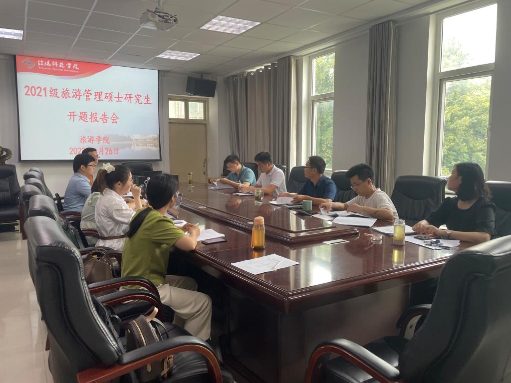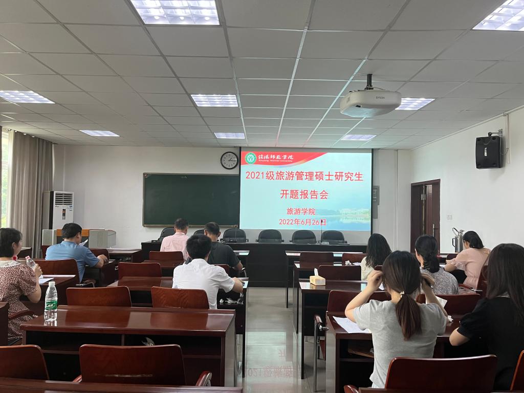 6月26日下午,太阳集团tyc1512021级旅游管理硕士研究生毕业论文开题报告会分3组在经管楼401、404和线上腾讯会议同时举行。彭荣胜、高军波和吴国琴教授分别任3组评审小组组长并主持报告会。