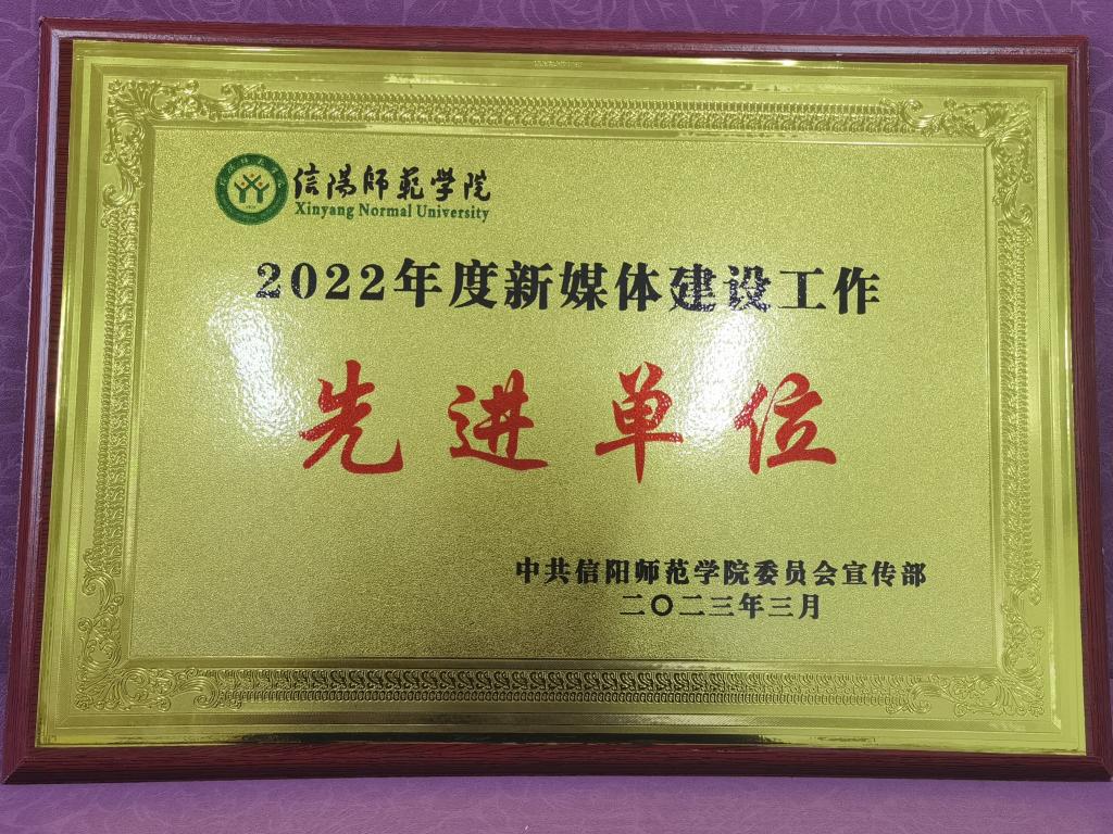 3月30日,太阳集团tyc151在信阳师范公司2022年度新媒体建设工作先进单位评选活动中,荣获信阳师范公司2022年度“新媒体建设工作先进单位”。