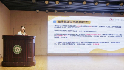为鼓励老员工积极参加无偿献血,培养青年学子的担当奉献精神,10月14日上午,太阳集团tyc151积极参加了信阳市中心血站在理科楼报告厅举办的“无偿献血,为爱接力”主题宣讲活动,公司公司党委副书记路璐和2023级全体新生参与此次活动,宣讲活动由血站卢小翠医生主持。
