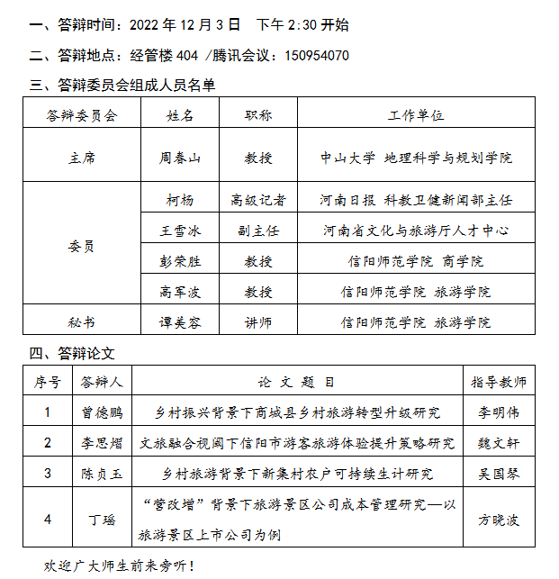 2022年下半年硕士研究生学位论文答辩公告
