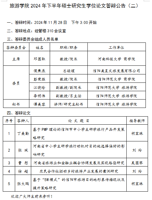 2024年下半年硕士研究生学位论文答辩公告