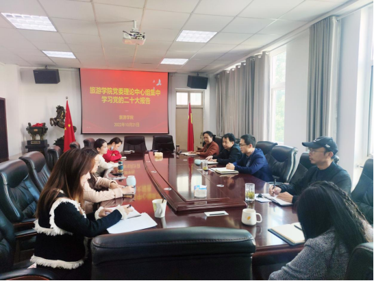 2022年10月21日下午,在经管楼404会议室,公司党委理论中心组集中学习党的二十大报告,党委理论中心组成员、全体党支部书记参加。